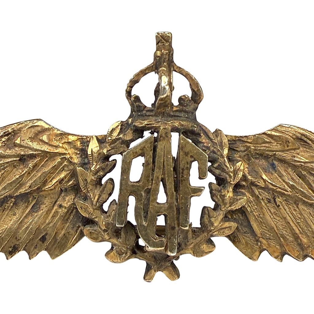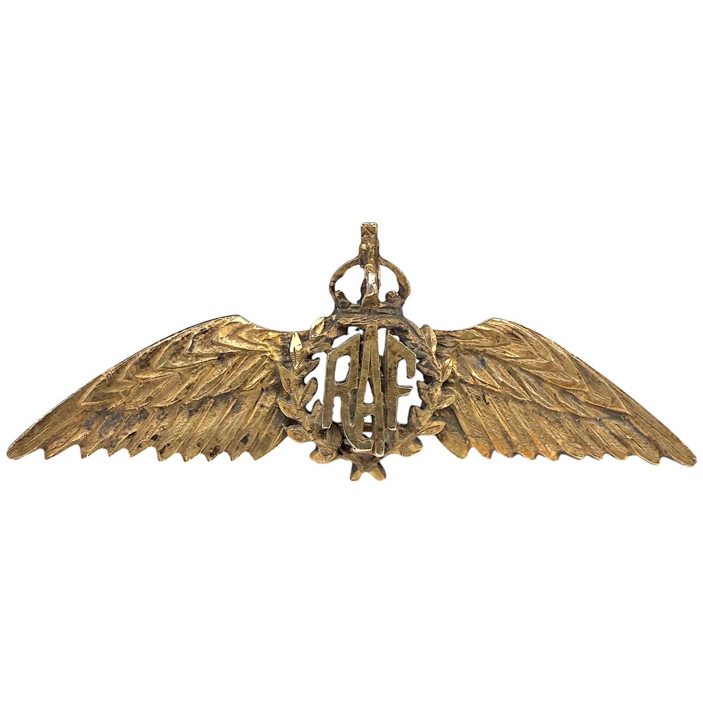 The reverse side has a sturdy pin attachment, indicating it was originally worn on the uniform of an RAF member.