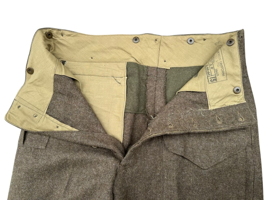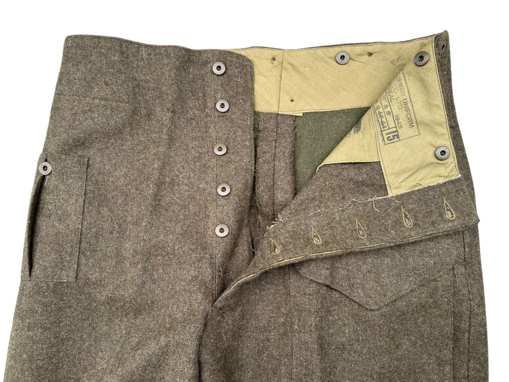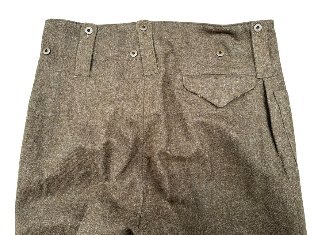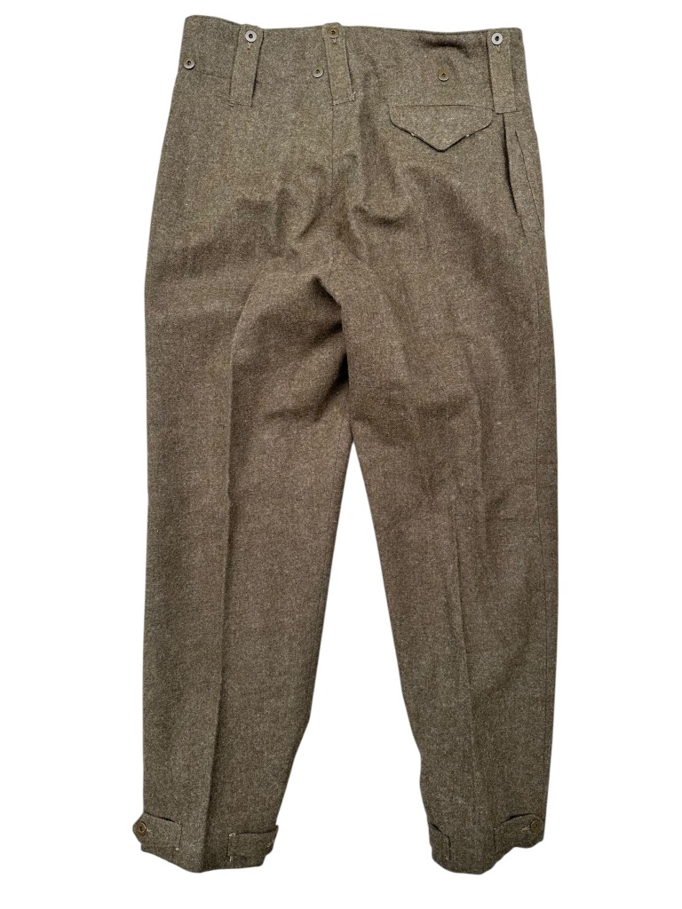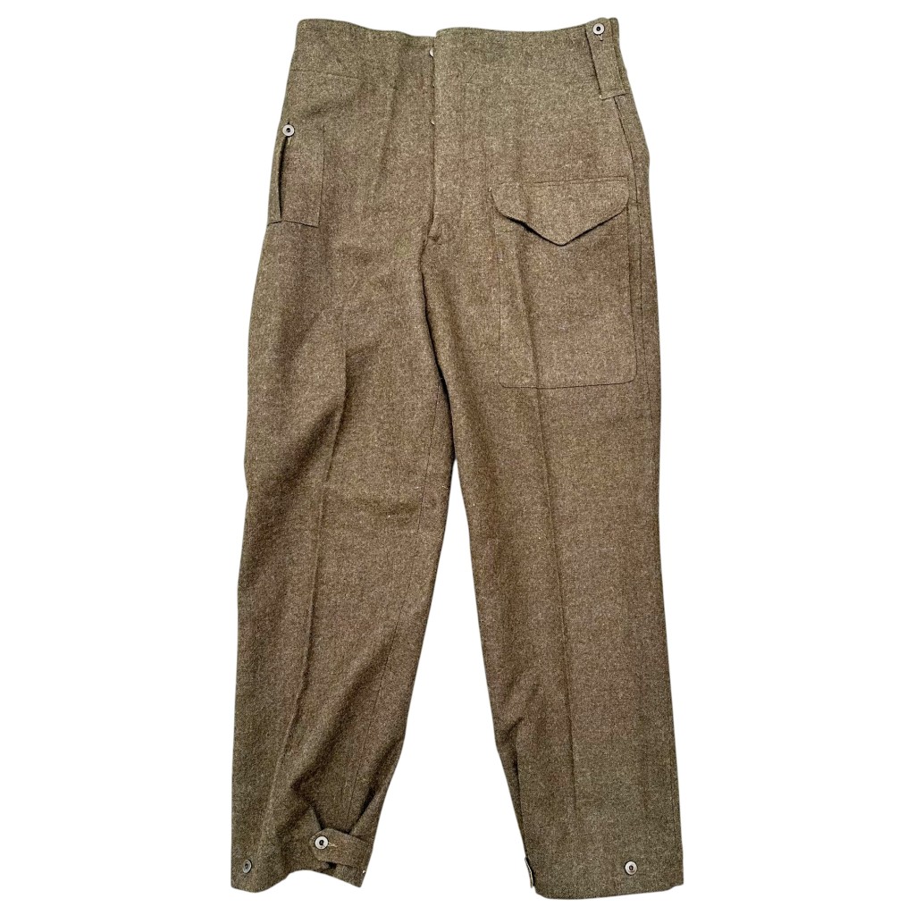 The trousers are made from the brown wool Battle Dress material typical for British and Canadian uniforms.