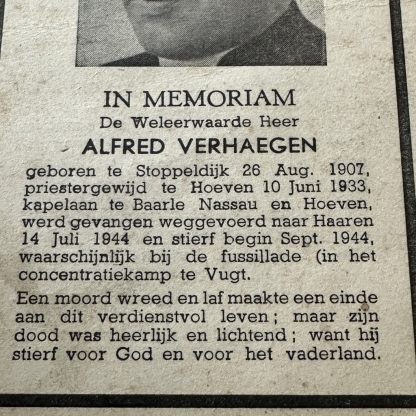 Origineel WWII Nederlands bidprentje van verzetsstrijder Alfred Verhaegen uit Hoeven