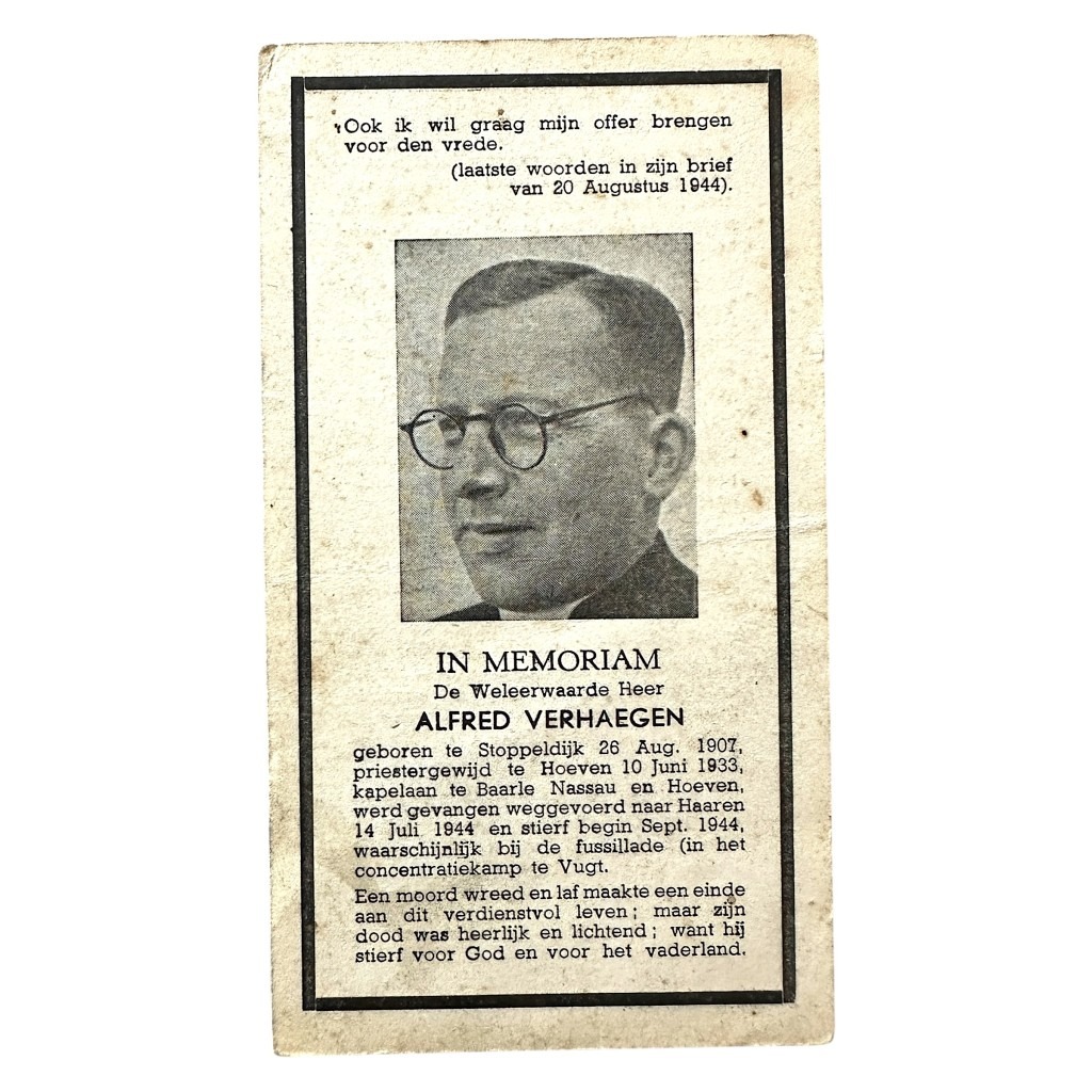 Original WWII Dutch death card of resistance fighter Alfred Verhaegen from Hoeven