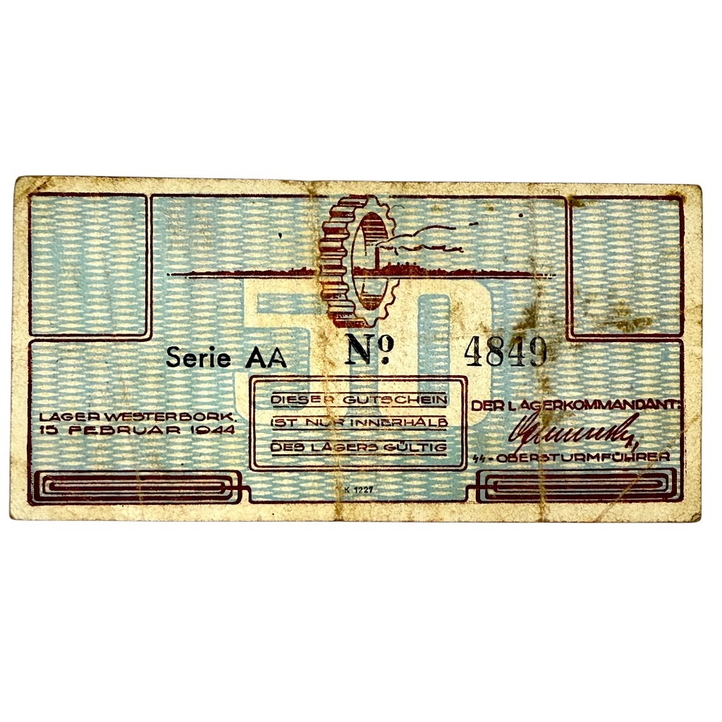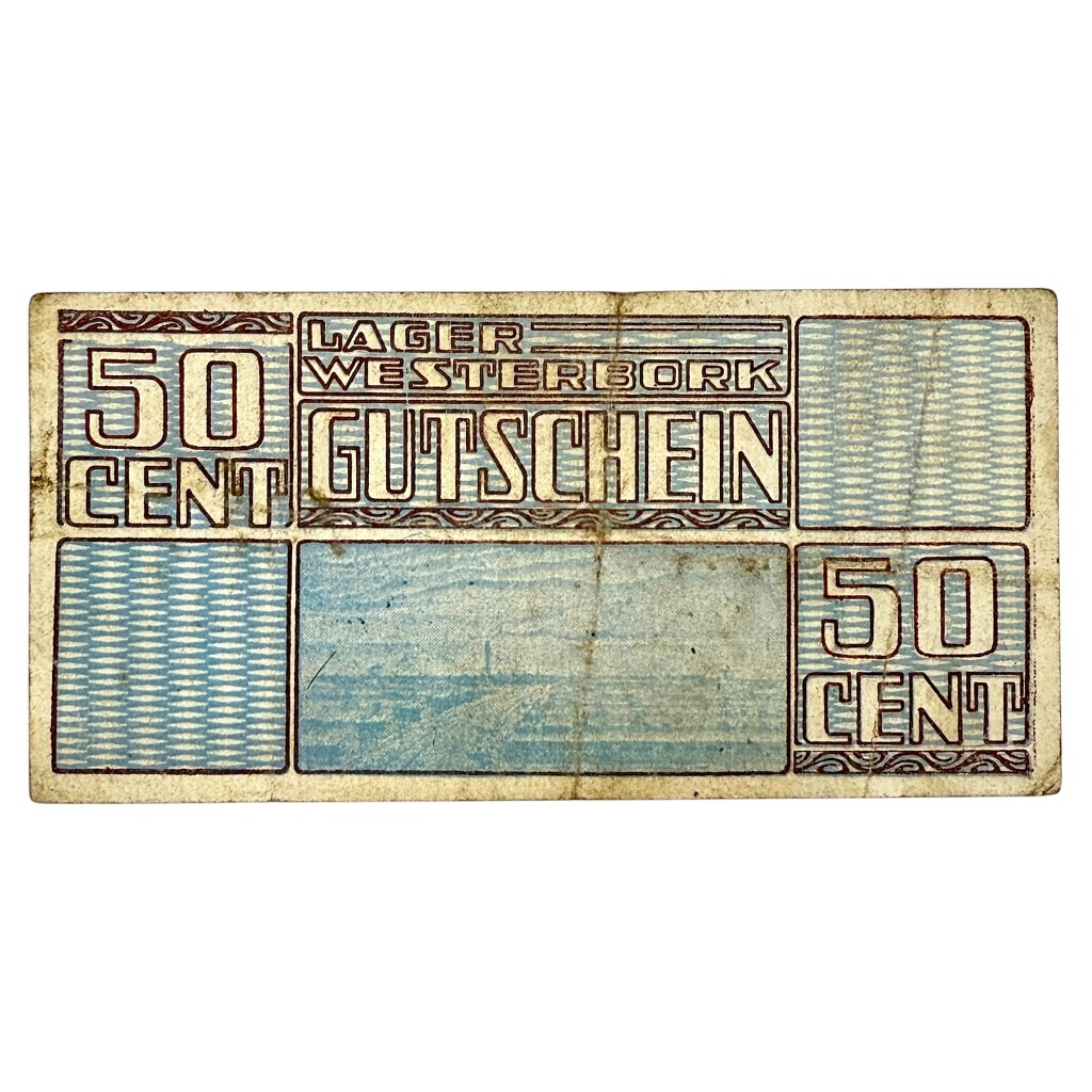 This is a 50 cent banknote that was used in ‘durchgangslager’ camp Westerbork during World War II.