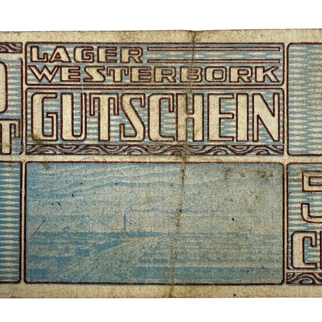 Het betreft een 50 cent bankbiljet dat gebruikt werd in concentratiekamp Westerbork tijdens de Tweede Wereldoorlog.