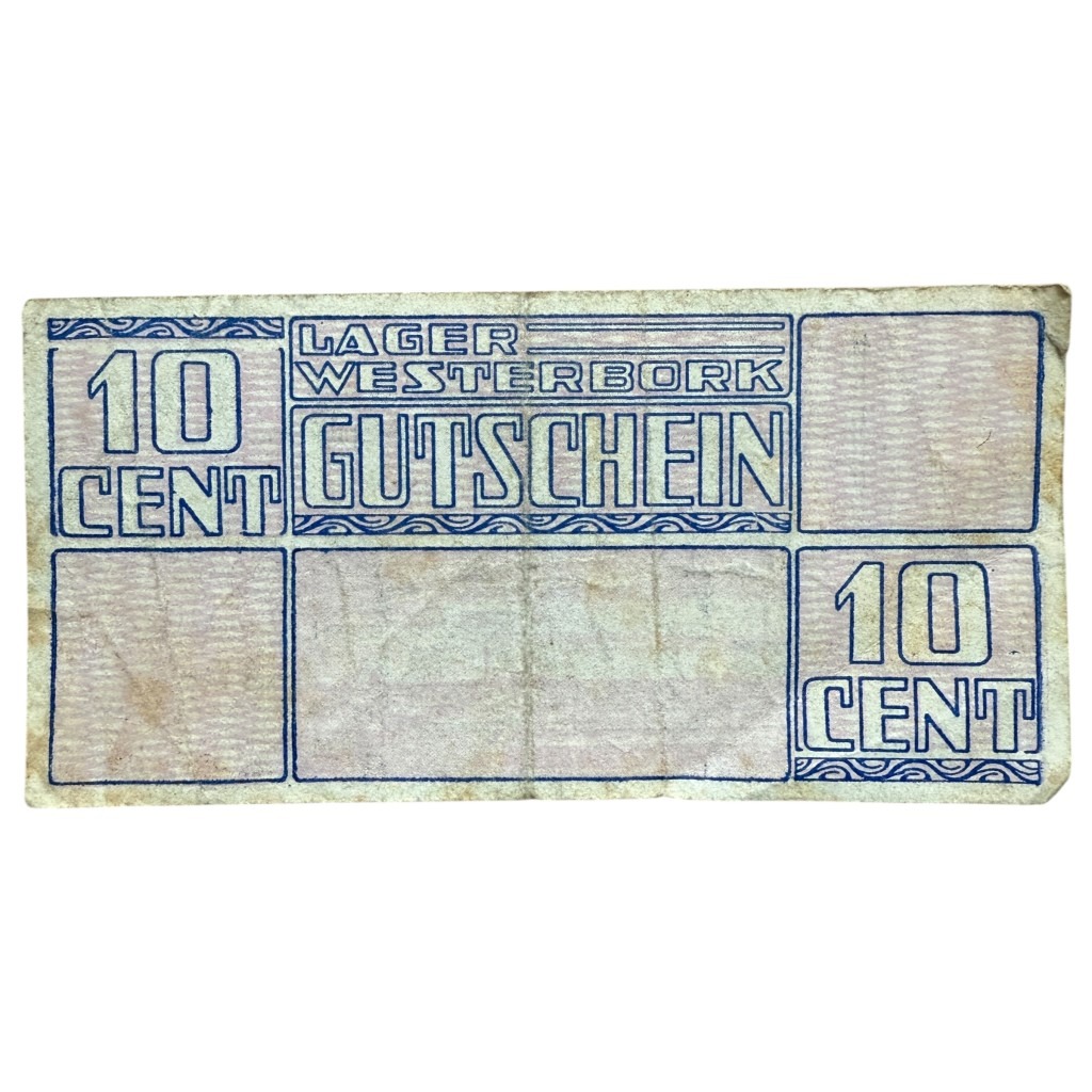 This is a 10 cent banknote that was used in ‘durchgangslager’ camp Westerbork during World War II.