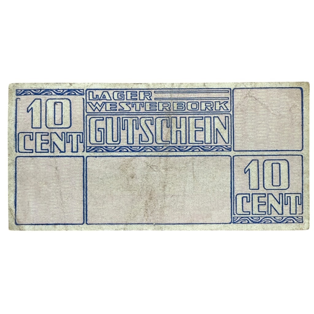 This is a 10 cent banknote that was used in ‘durchgangslager’ camp Westerbork during World War II.