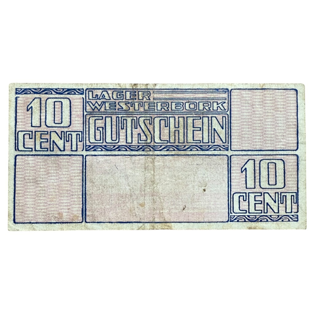 This is a 10 cent banknote that was used in ‘durchgangslager’ camp Westerbork during World War II.