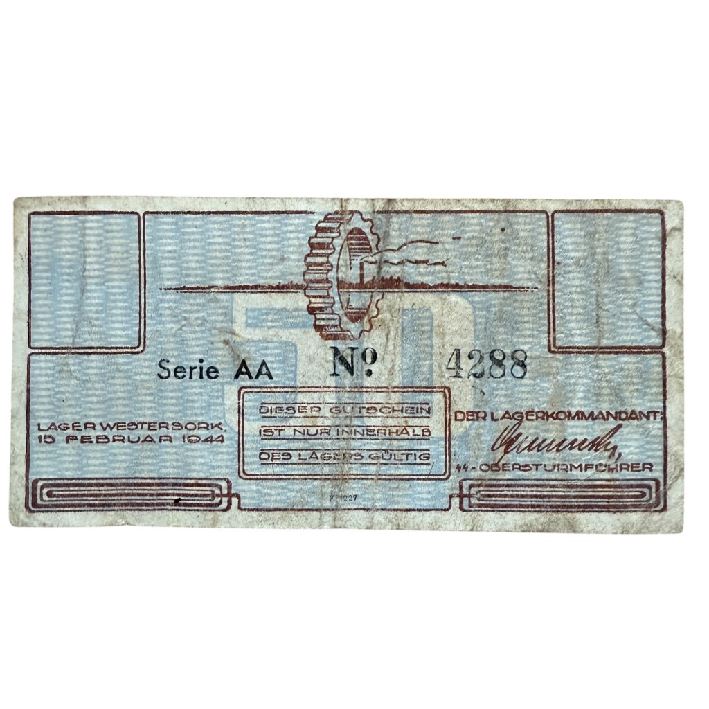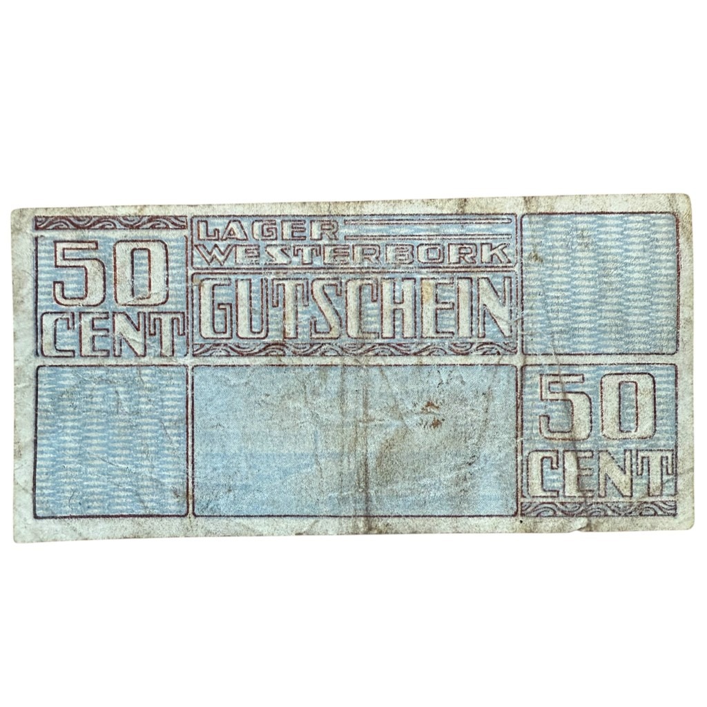 This is a 50 cent banknote that was used in ‘durchgangslager’ camp Westerbork during World War II.
