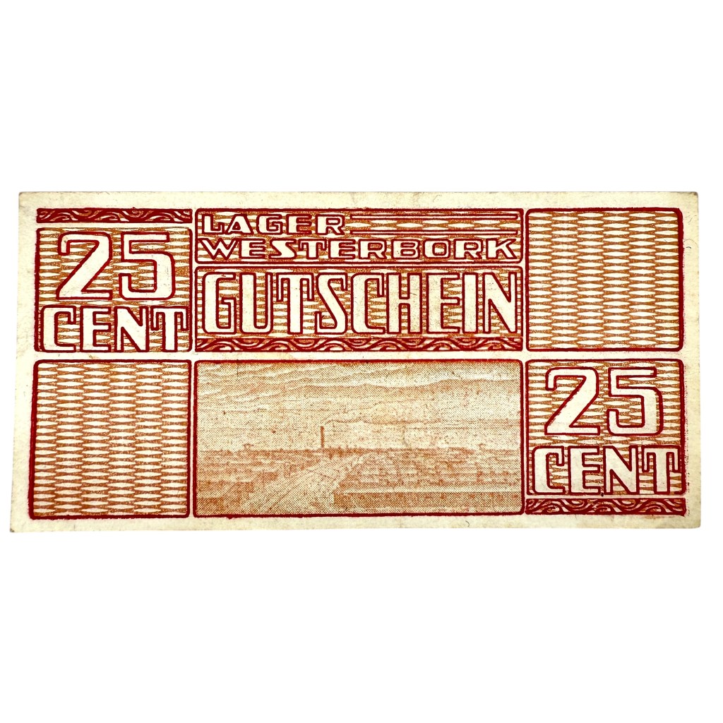 This is a 25 cent banknote that was used in ‘durchgangslager’ camp Westerbork during World War II.