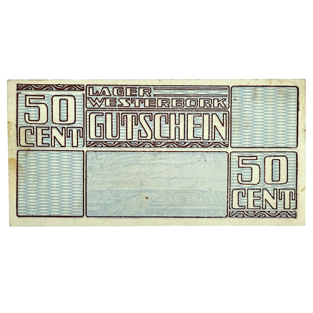 This is a 50 cent banknote that was used in ‘durchgangslager’ camp Westerbork during World War II.