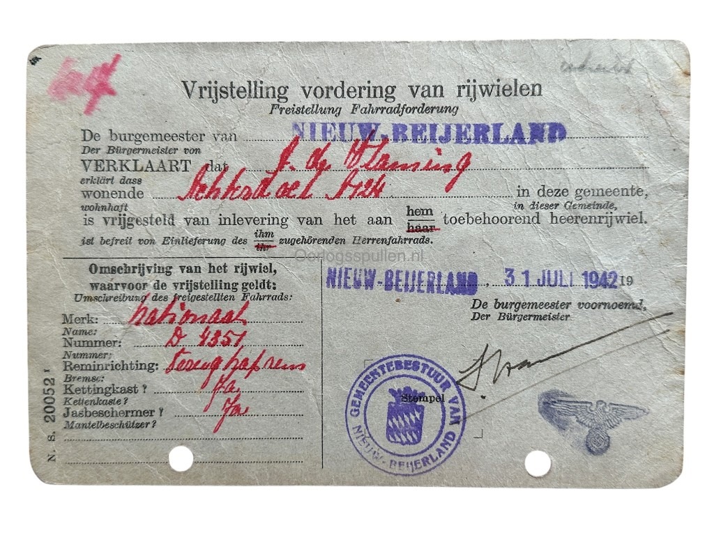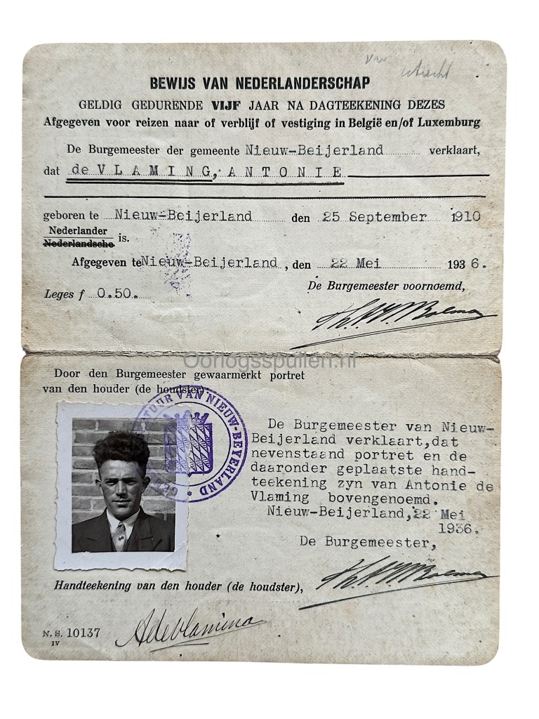 This set of Ausweisen is in good condition and came from a Dutch man from Nieuw-Beijerland and later during the war in Oud-Beijerland.