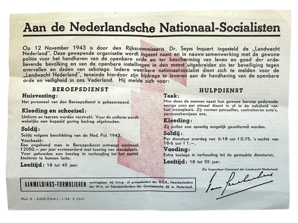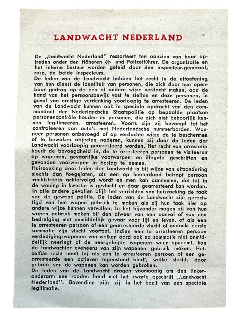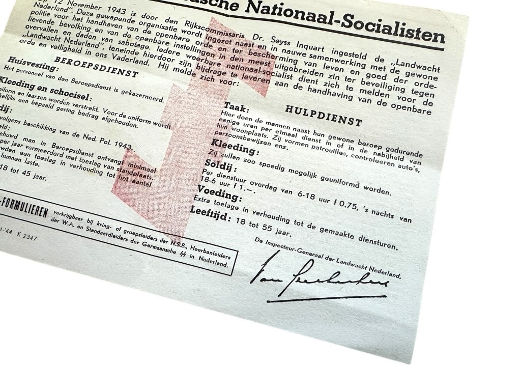 Original WWII Dutch ‘Landwacht Nederland’ flyer