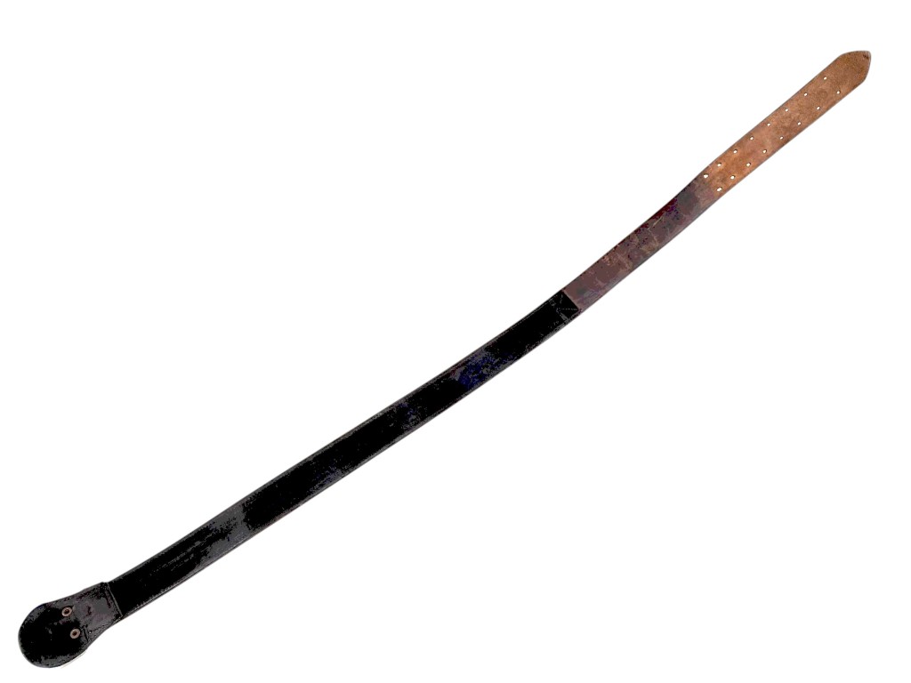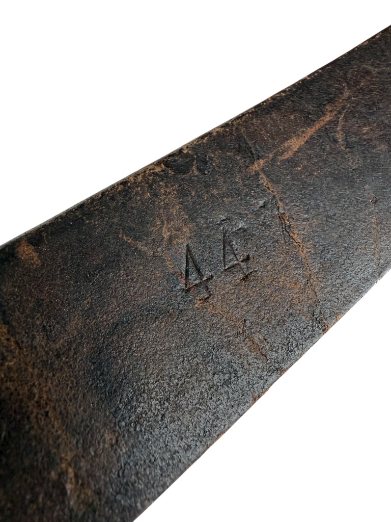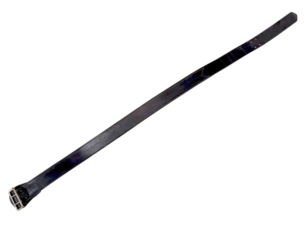 Deze Nederlandse lederen riem is een universeel model dat tijdens de oorlogsjaren werd gedragen binnen verschillende Nederlandse organisaties, waaronder de Schalkhaar Politie, Landwacht Nederland en andere collaboratie organisaties. De riem heeft een lengte van 120 cm en is vervaardigd uit stevig zwart leer met een metalen gesp. De riem vertoont duidelijke gebruikssporen die passen bij het intensieve gebruik tijdens de oorlog. Een interessant stuk voor verzamelaars van Nederlandse Tweede Wereldoorlog-materialen of collaboratie materiaal!