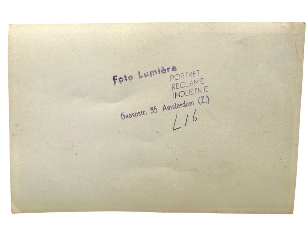 The reverse side bears a stamp from Foto Lumière in Amsterdam with the address Gaaspstraat 35.