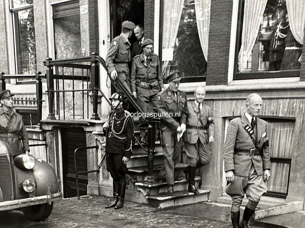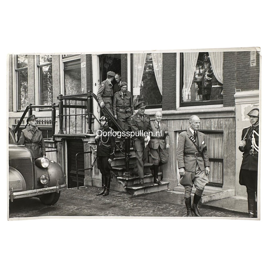 Originele WWII Nederlandse bevrijdingsfoto Amsterdam – Prins Bernhard en leden van de NBS