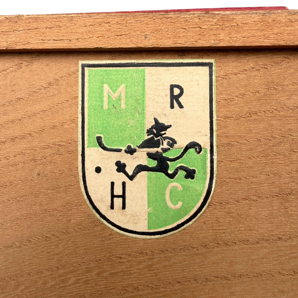 Op de achterzijde bevindt zich een embleem van een Rotterdamse hockeyclub.