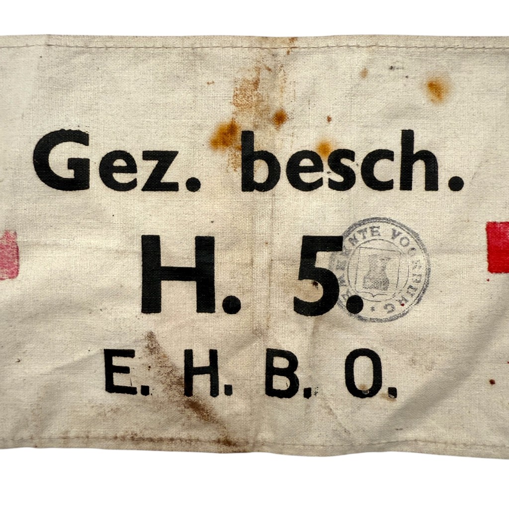 Original WWII Dutch Luchtbescherming EHBO ‘Gezinsbescherming’ armband Voorburg