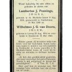 Op het bidprentje staan Lambertus J. Pennings (14. R.A.) en Wilhelmus J.G. van Doorn (2 R.W.).