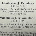 Pennings sneuvelde in Dubbeldam op 10 mei 1940 en Van Doorn overleed op 15 mei 1940 in Dordrecht.