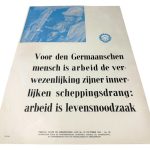 Opschrift: Voor den Germaanschen mensch is arbeid de verwezenlijking zijner innerlijken scheppingsdrang: arbeid is levensnood.