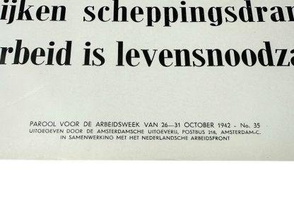 Deze Nederlandsch Arbeitsfront (NAF) poster is in gebruikte conditie en deze poster werd opgehangen van 26 tot en met 31 oktober 1942.