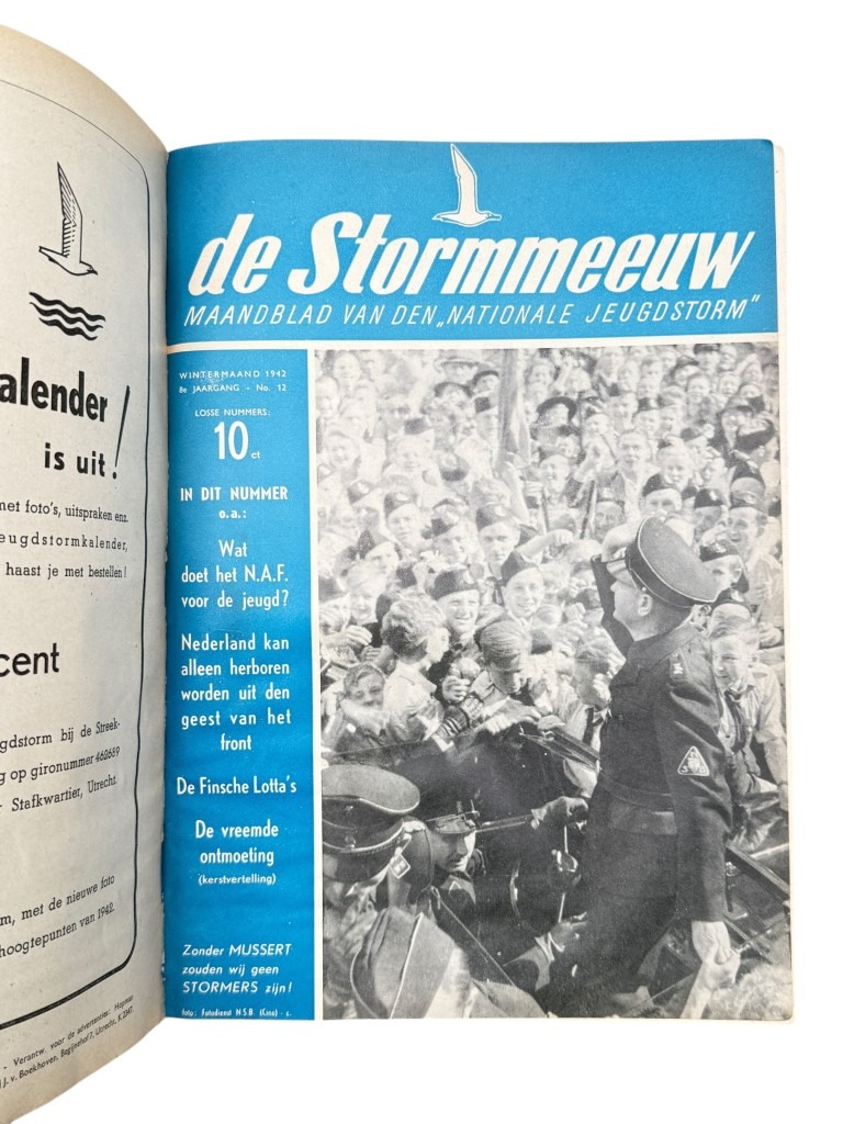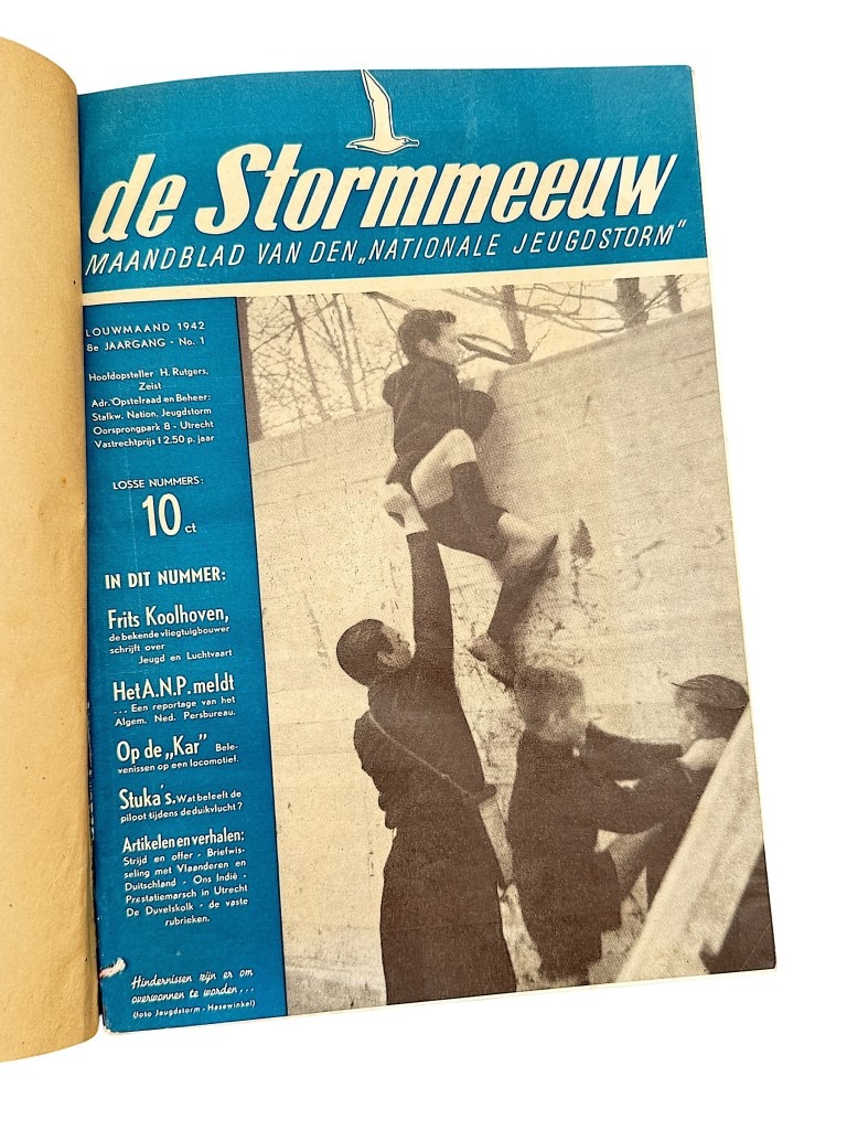 Original WWII Dutch Nationale Jeugdstorm ‘de Stormmeeuw’ bound 12 magazines year 1942