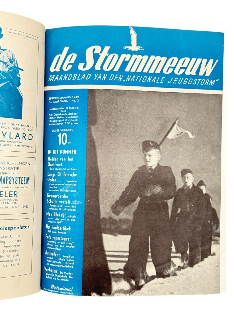 This Dutch Nationale Jeugdstorm collection is in used condition and consists of 12 bound Stormmeeuw magazines from 1942.