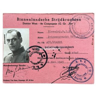Originele WWII Nederlandse Binnenlandse Strijdkrachten doorgangskaart Hilversum/Naarden