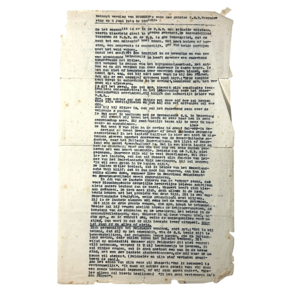 Originele WWII Nederlandse NSB beknopt verslag van Anton Mussert’s rede der geheime N.S.B. vergadering op 5 Juni 1943 te Utrecht