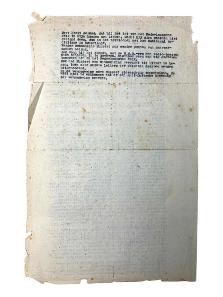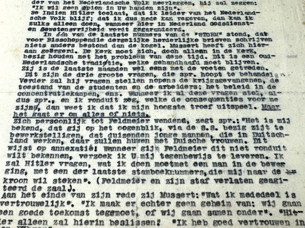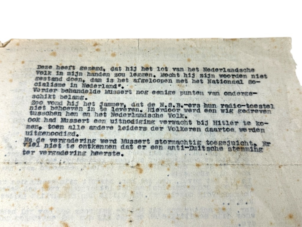 Original WWII Dutch NSB Brief report of Anton Mussert’s speech at the secret N.S.B. meeting on June 5, 1943, in Utrecht