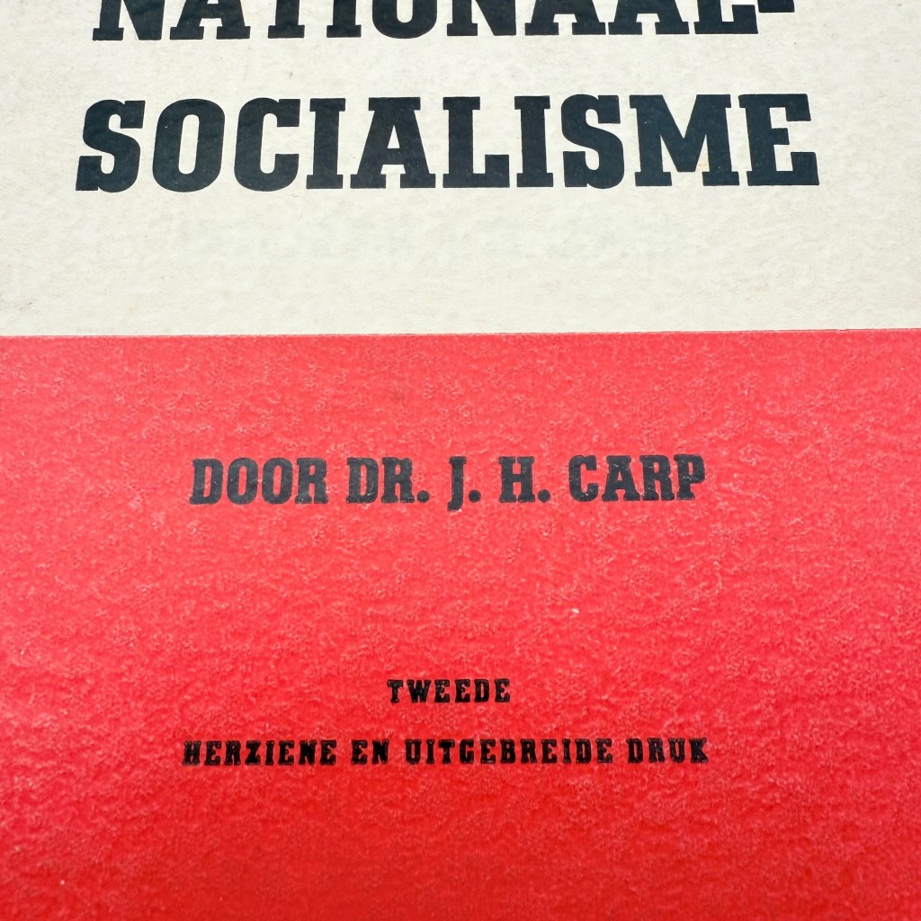 Dr. J.H. Carp was a Dutch jurist and publicist who wrote several National Socialist texts during the occupation period. The brochure is directly related to the National Socialist Movement (NSB), which used such publications to disseminate its ideological positions.