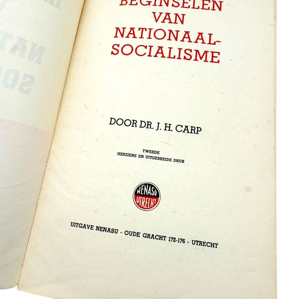 This NSB brochure “Principles of National Socialism” by Dr. J.H. Carp, published by Nenasu (Utrecht), second revised and expanded edition from 1942.