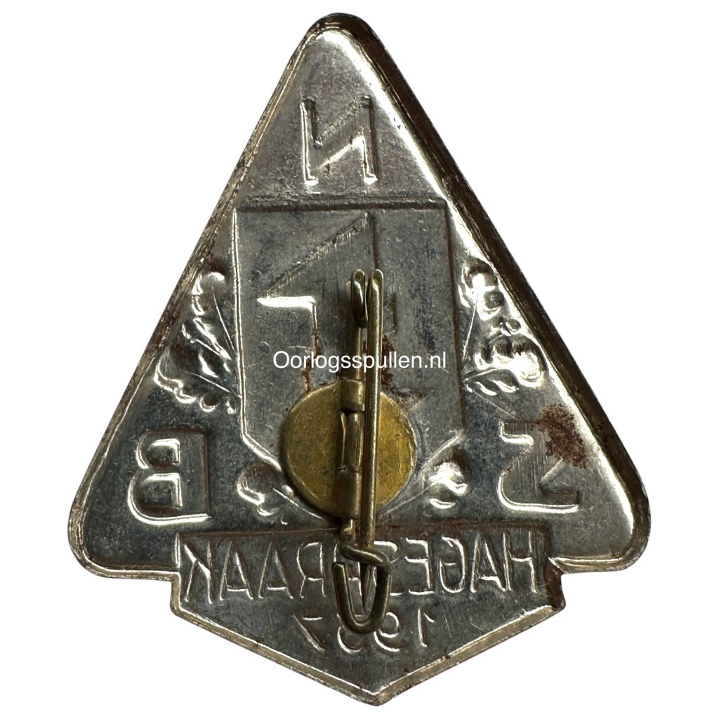 This Dutch NSB pin is in good condition, bearing the Wolfsangel symbol and was issued because of the NSB Hagespraak held at the Goudsberg in Lunteren.