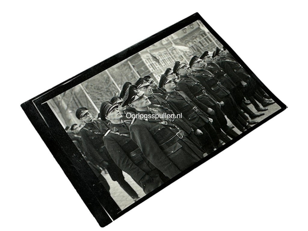 Deze Nederlandse NSB foto is in goede conditie en daarop is een groep NSB leden te zien tijdens een ceremonie.