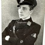 Deze portret foto is in goede conditie en daarop is een lid te zien van de Nederlandse collaboratie beweging de NSB, ook wel bekend als de Nationaal Socialistische Beweging.