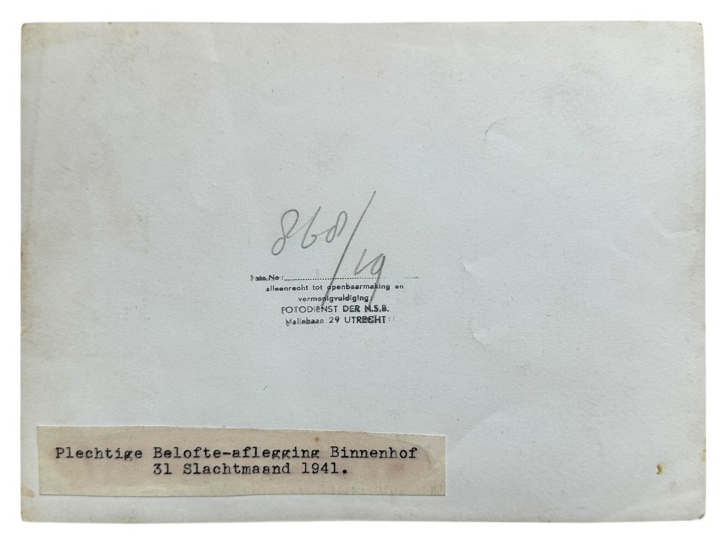 This NSB (National Socialist Movement) photo is in good condition, dates from 1941 and it shows a pledge taking by the NSB at the Binnenhof in The Hague.