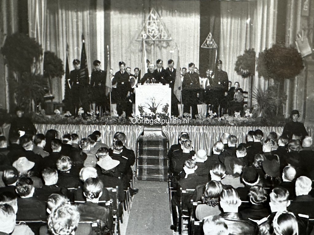 This Dutch NSB photo is in good condition and it shows NSB leader Anton Mussert during the kring meeting in Apeldoorn on February 19, 1944.