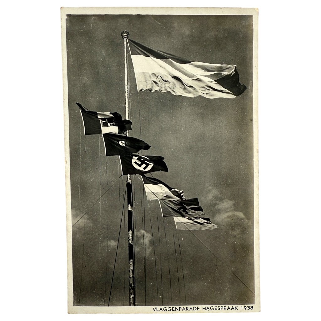 This Dutch NSB postcard is in good condition and shows the flag parade during the Hagespraak of 1938 in Lunteren.