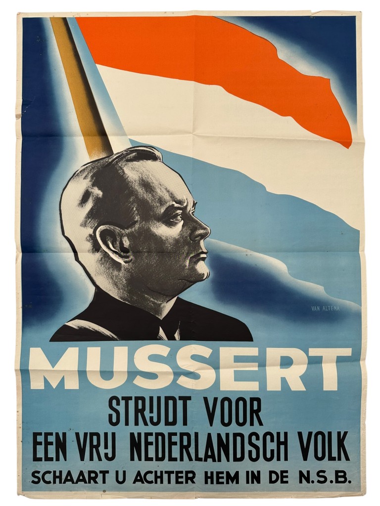 Originele WWII Nederlandse NSB poster ‘Mussert strijdt voor een vrij Nederlandsch volk schaart u achter hem in de N.S.B.’