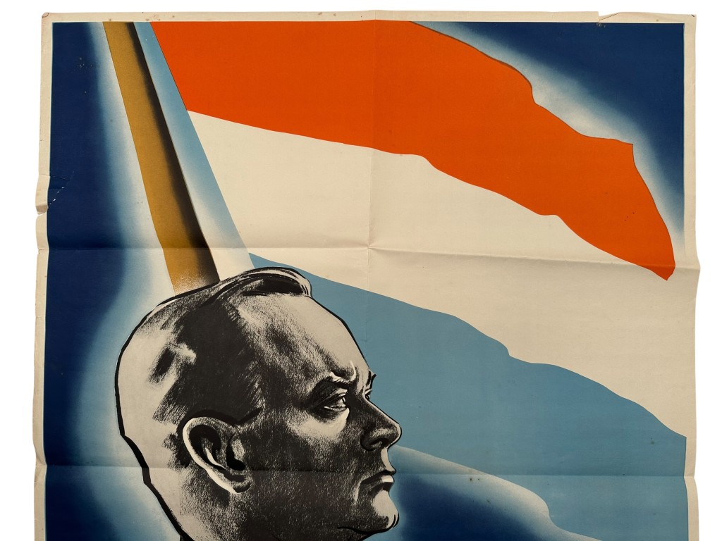 Deze poster vormt een historisch document uit de bezettingsperiode en is interessant voor verzamelaars van Tweede Wereldoorlog en Nederlandse politieke geschiedenis.