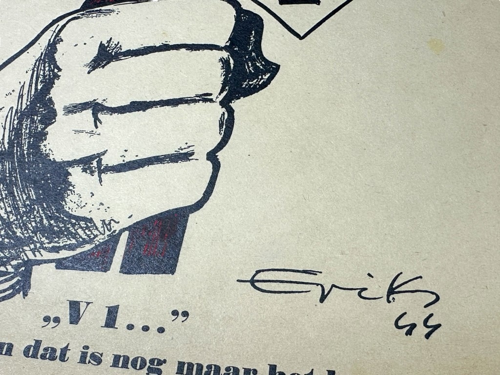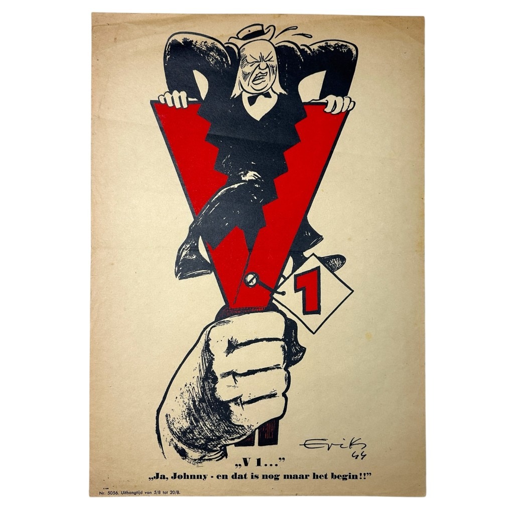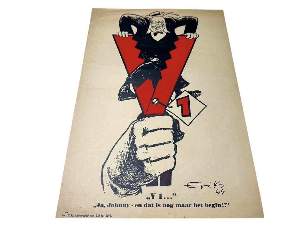 This rare Dutch NSB poster is in good condition, was produced in 1944 and contains information about the V1 rockets.
