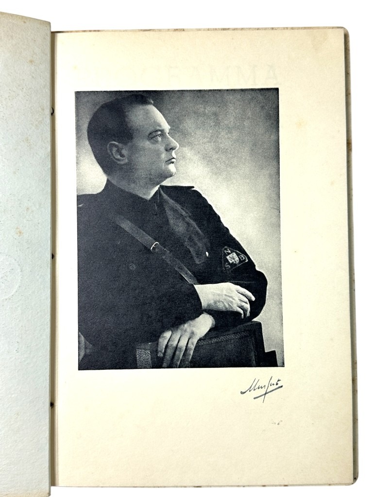 This rare Dutch NSB brochure with beautiful decorative cover is in good condition, dates from December 1931 and was hand-signed by NSB leader Anton Mussert.