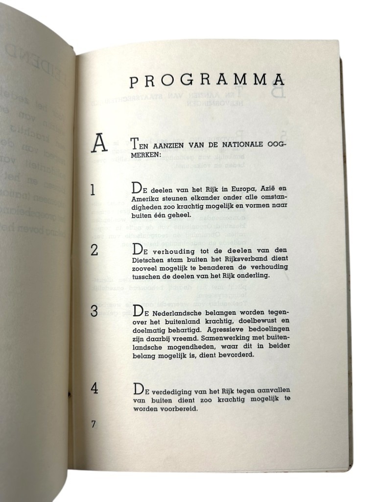 Inscription: Program with notes – Along with the sources of Dutch National Socialism.