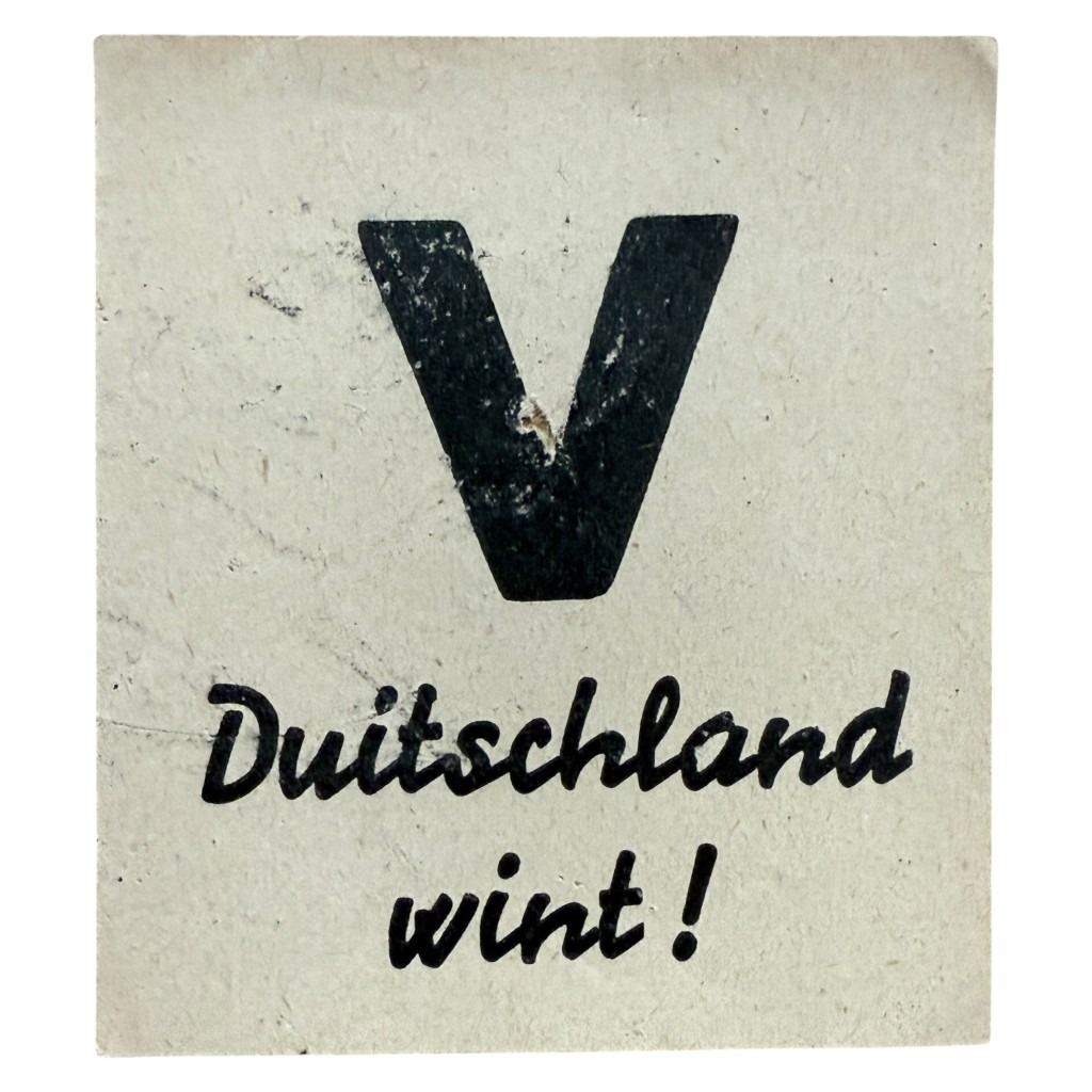 The V-actions were Allied propaganda campaigns based on the V-sign (V for Victory). To counter their impact, the Germans launched a response campaign with the slogan: “V = Victory, because Germany is winning for Europe on all fronts.”