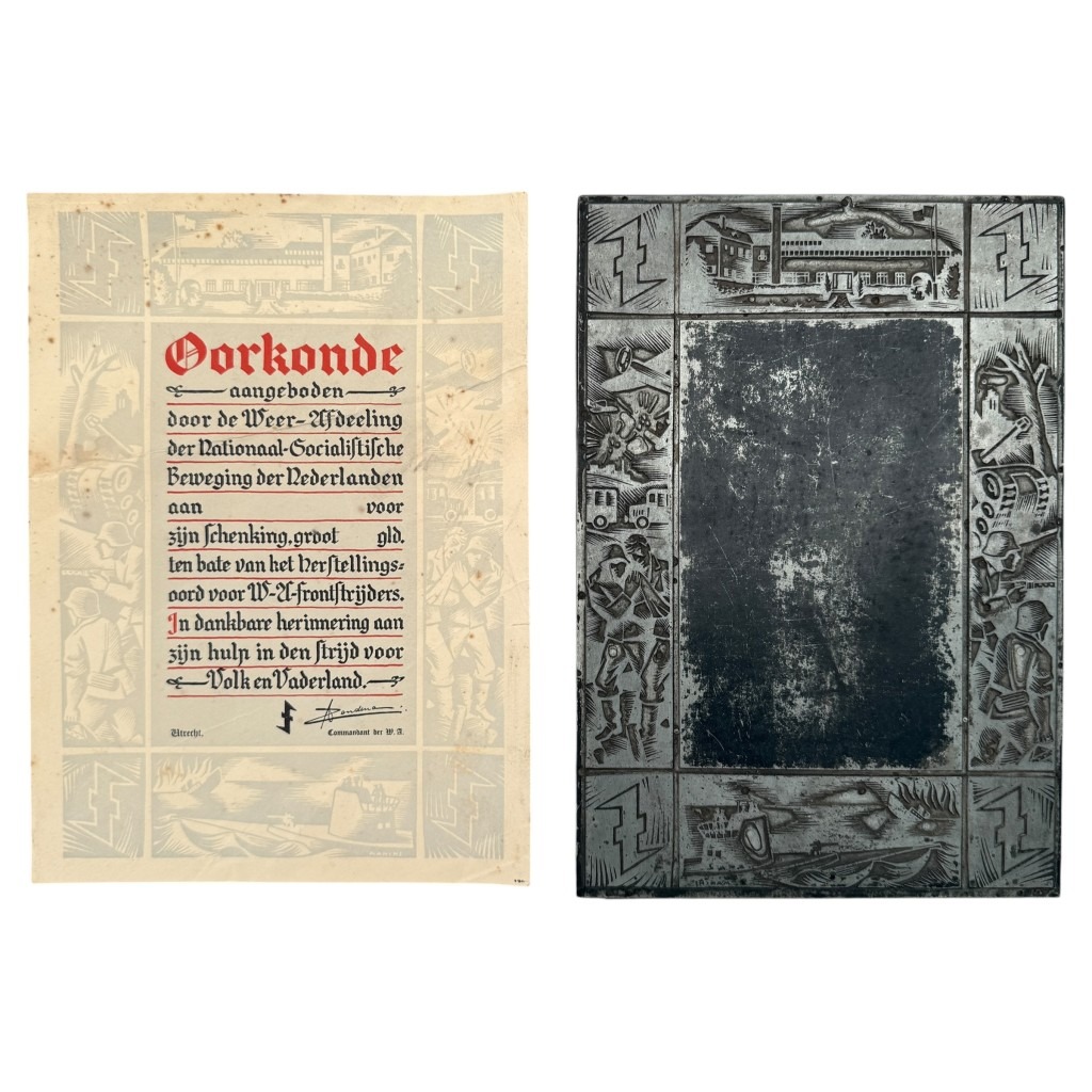The combination of both the printed certificate and the authentic printing plate makes this an exceptionally rare and historically valuable collector’s item within the field of Dutch collaboration memorabilia!