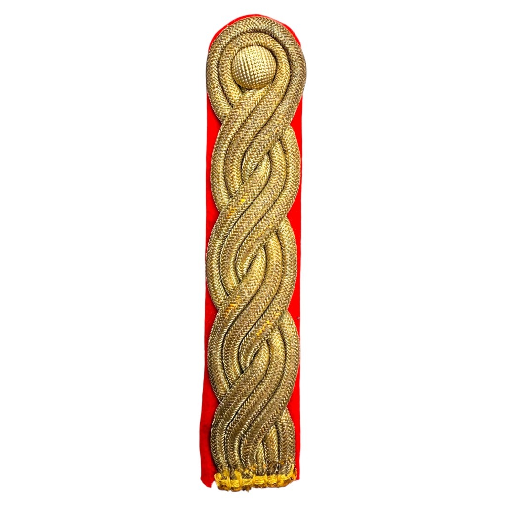 This Dutch NSB W.A. ‘Hooger Kader’ shoulder board is in worn condition and was worn by a Banleider, Opperbanleider, Heerbanleider or Opperheerbanleider.