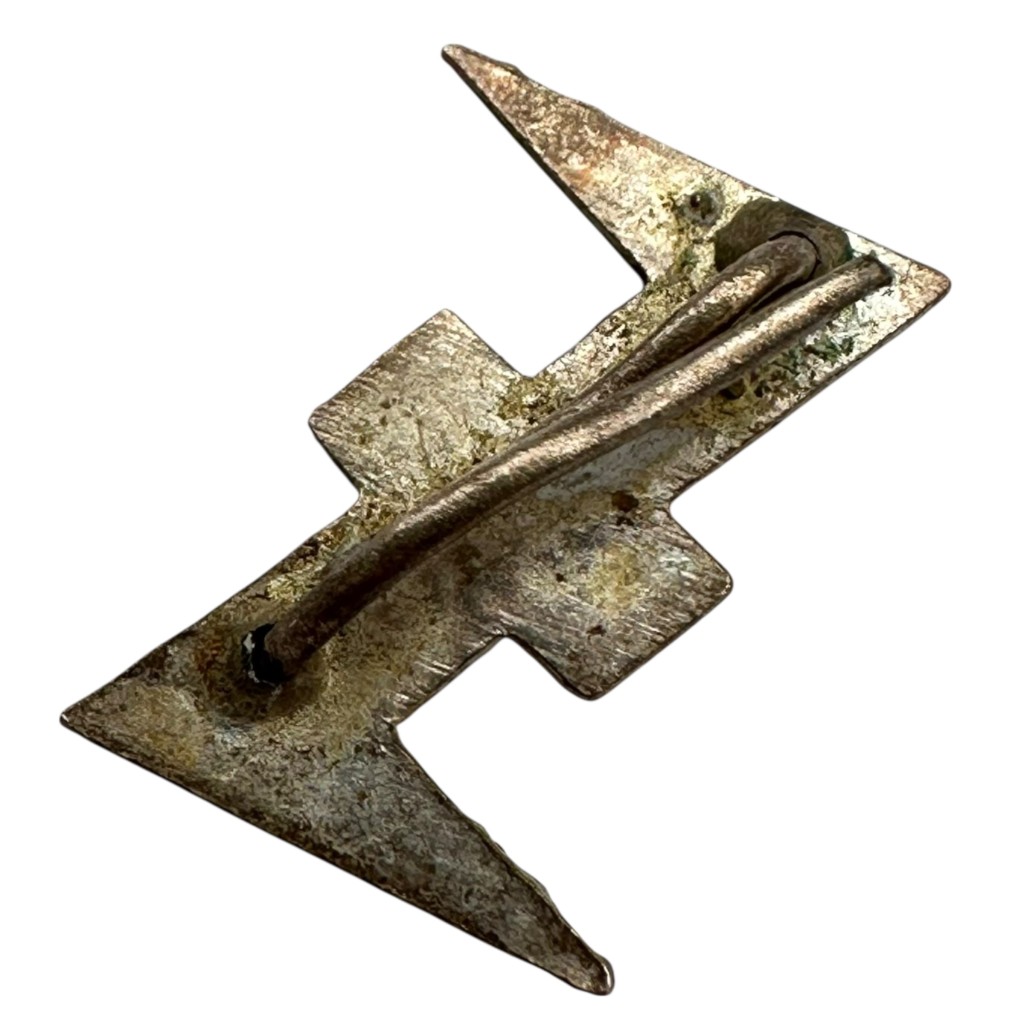 Dit Nederlandse metalen NSB Wolfsangel embleem is in goede conditie en werd gedragen op het NSB schuitje.