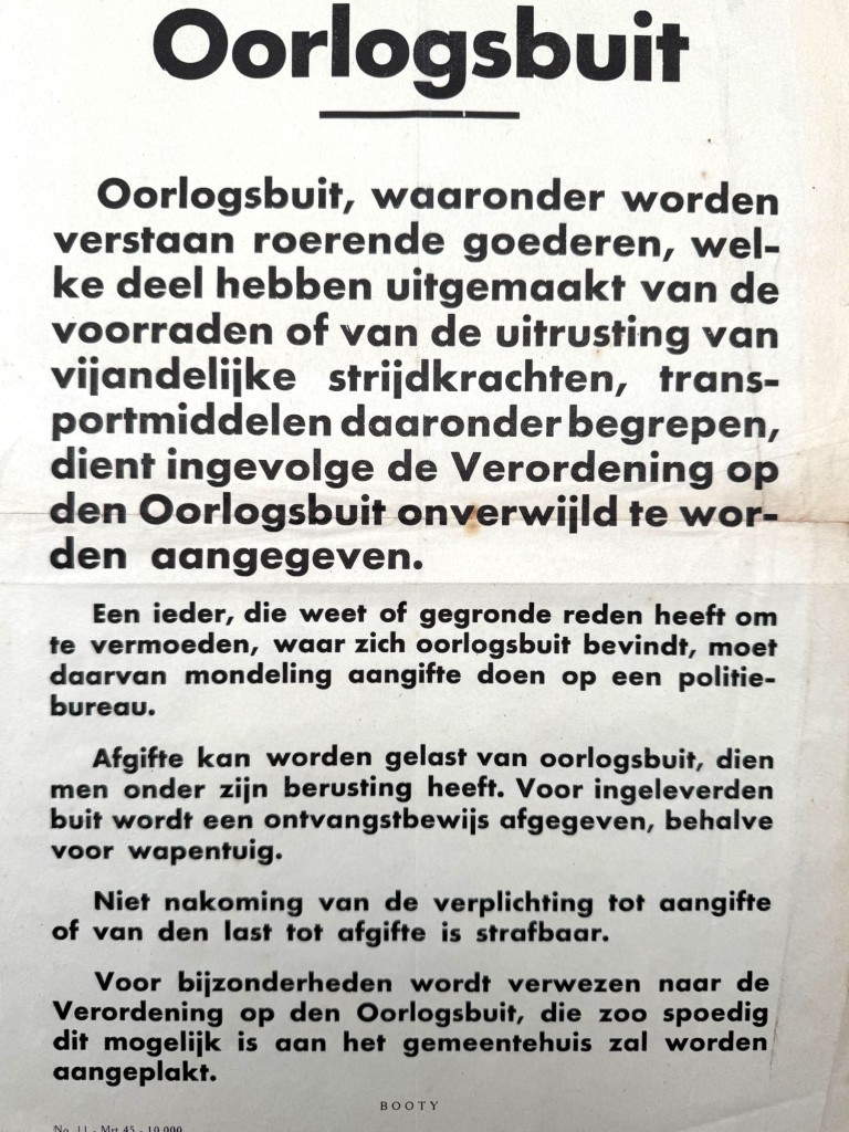 Originele WWII Nederlandse ‘Oorlogsbuit’ poster maart 1945
