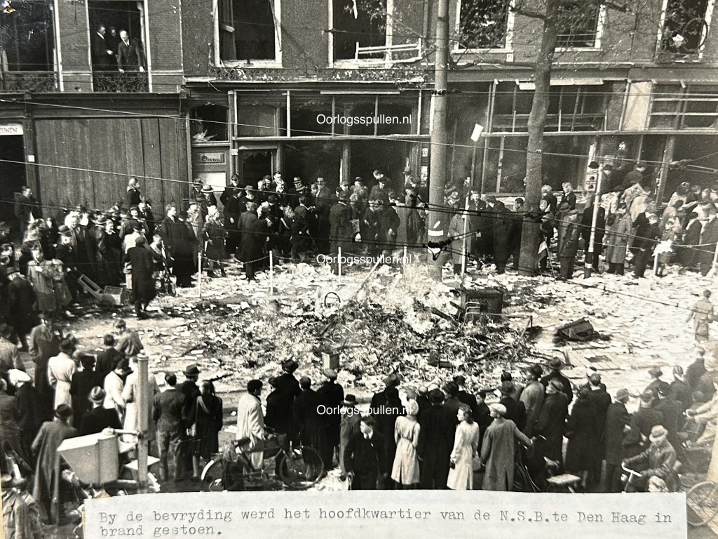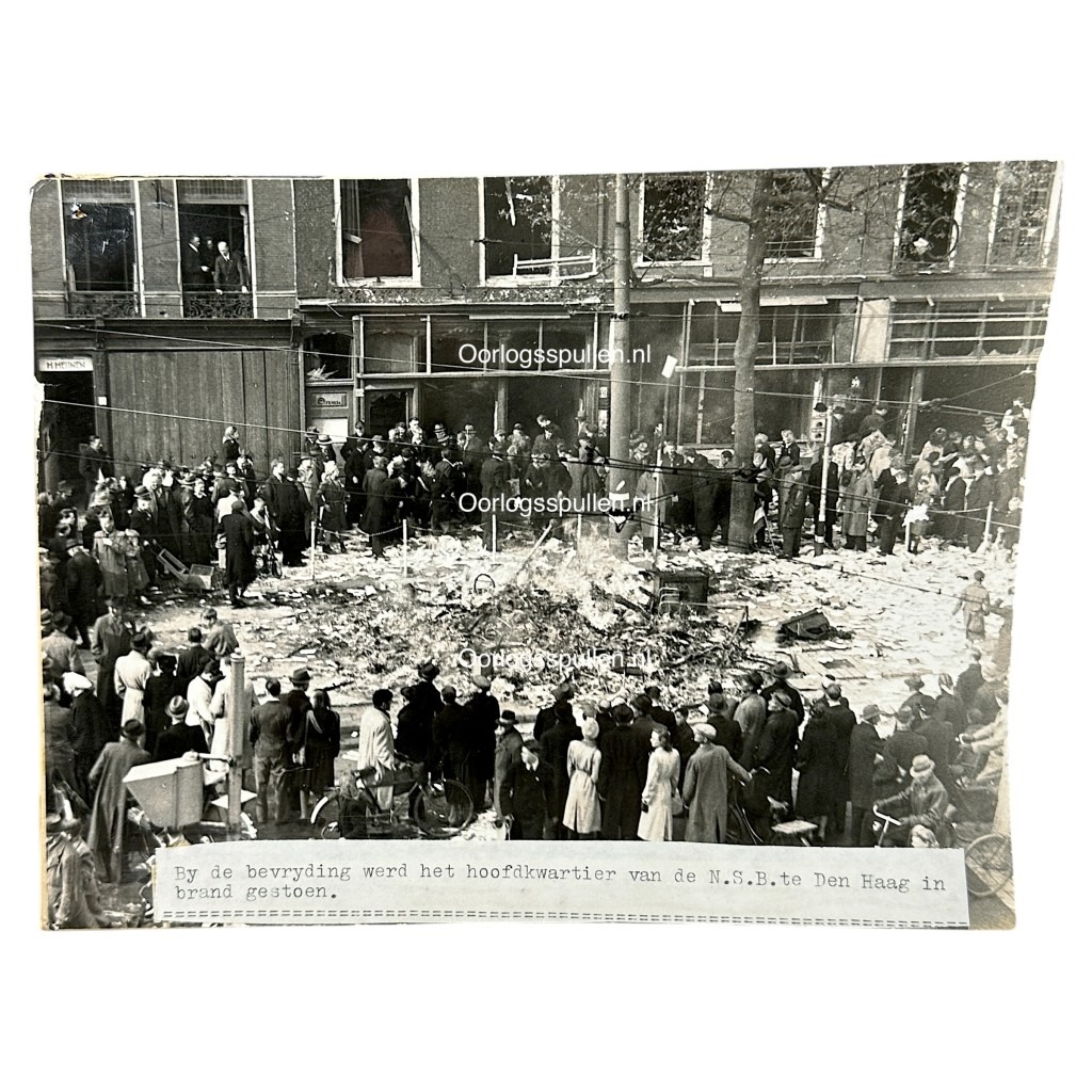 Originele WWII Nederlandse bevrijding foto NSB hoofdkwartier in Den Haag