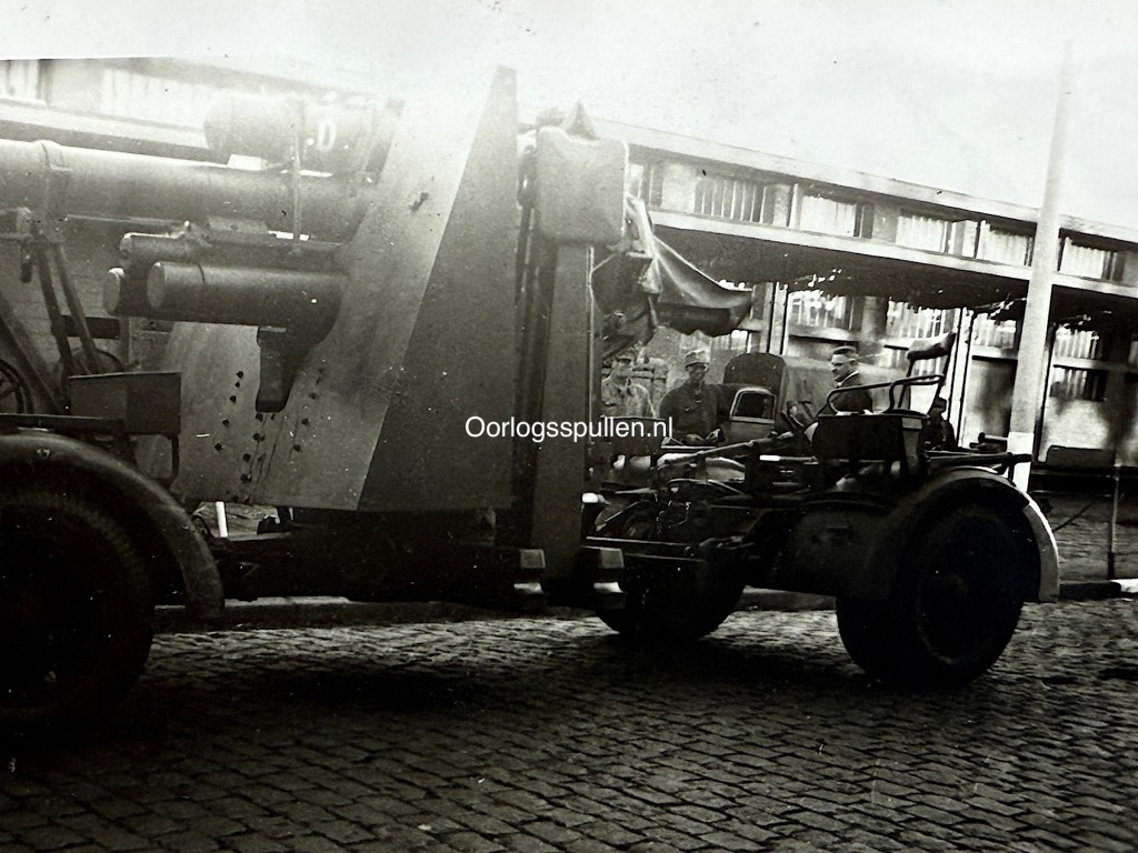 De derde foto toont een Duits luchtafweer kanon (Flak 88) opgesteld op een voertuig.