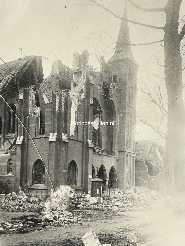 Op de foto’s staan onder andere gevangen genomen Duitse Fallschirmjägers, vernielde straten en de Martelaren van Gorcum kerk.