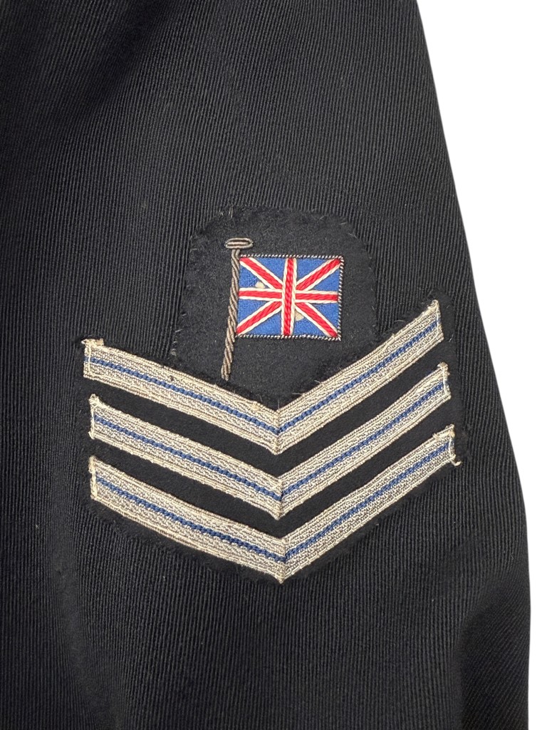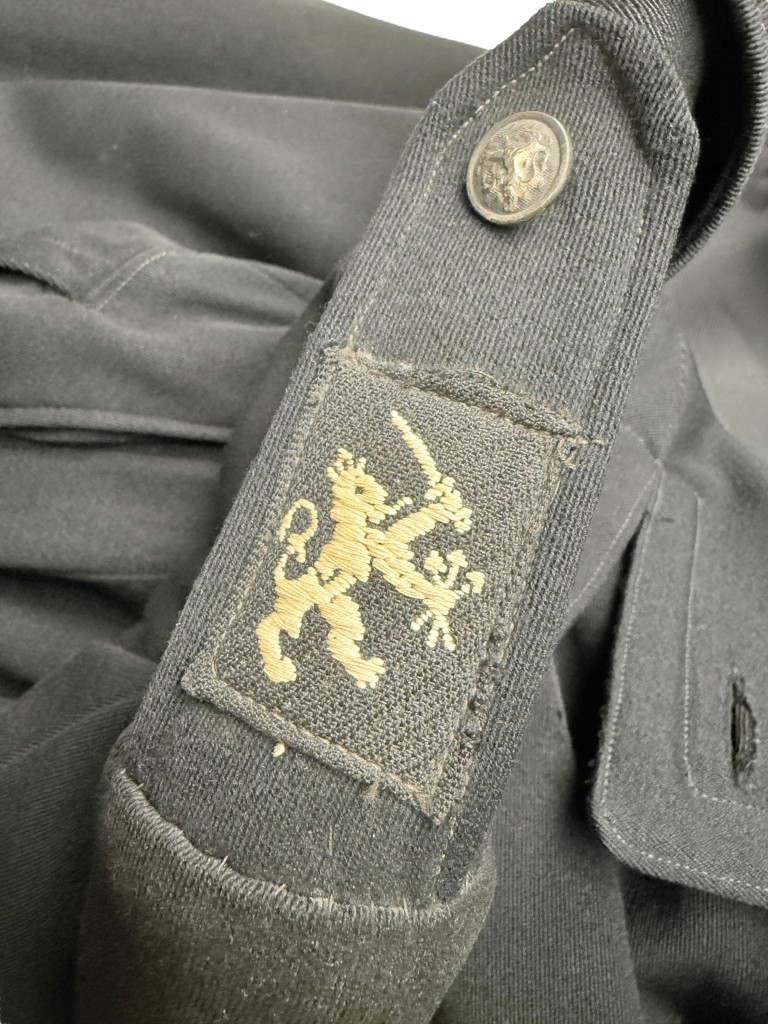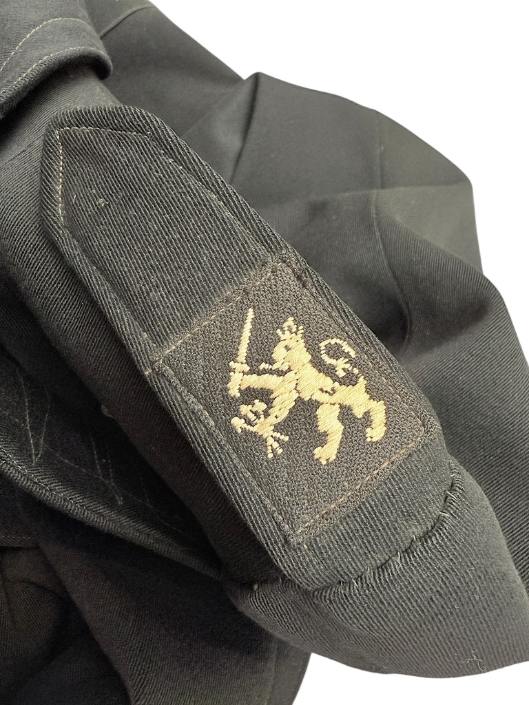 The coat dates from wartime, while the insignia were added shortly after the liberation, around 1945. The British flag emblem also confirms the presence of Allied forces in the Netherlands at that time.